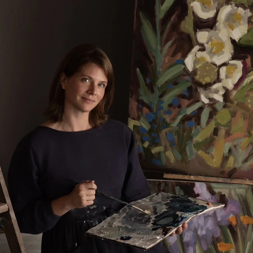 Her inspirations come from having spent countless hours walking the trails and being immersed in the natural world of Bowen Island with her two children and dog. Every day she sees something new and breathtaking out there to inspire her work, be it the fog on the mountains in the rain or the smokey sunsets across the water in the summer.