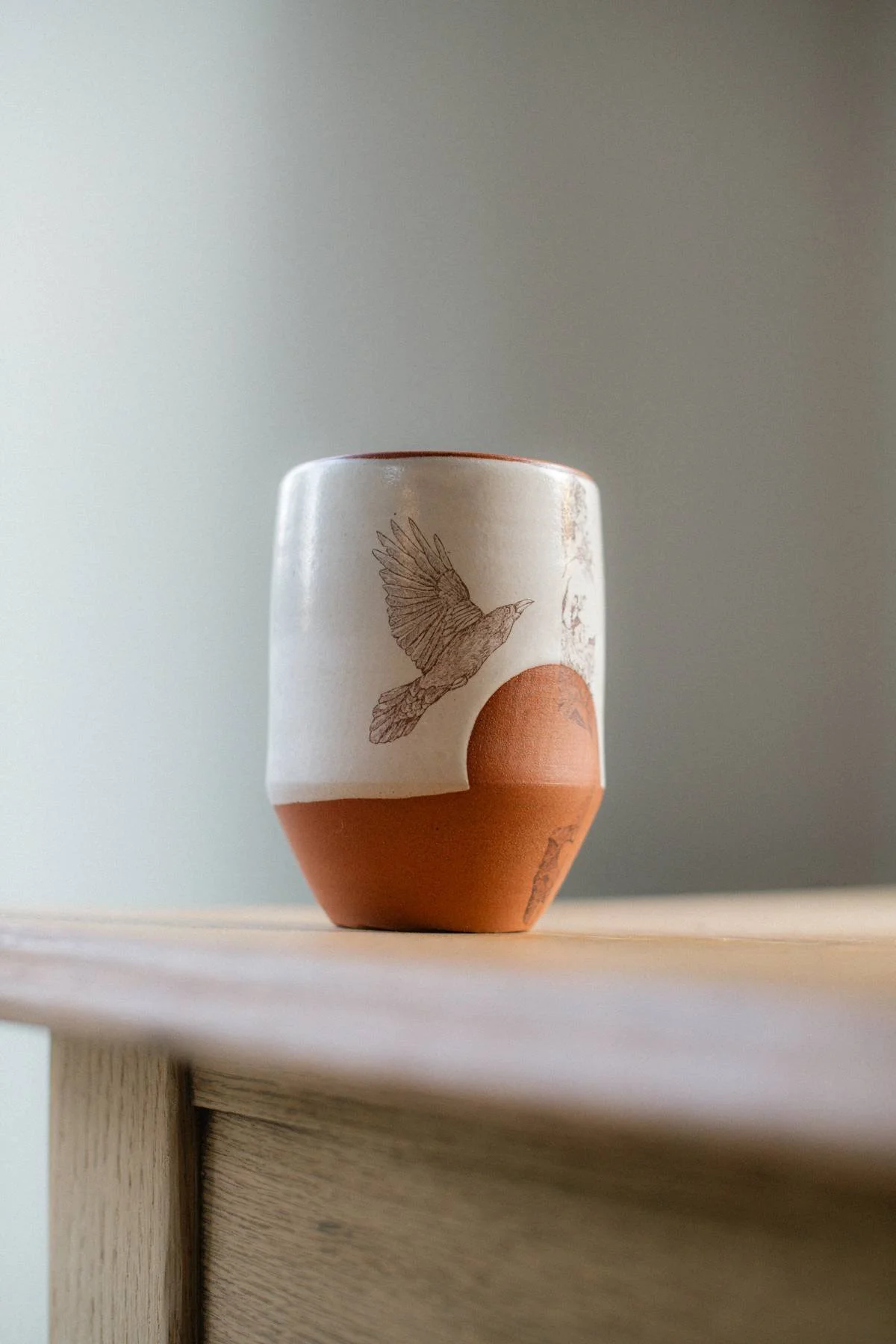 Paige Coull creates functional modern pots for the everyday. Inspired by her gulf island community, Paige incorporates the moody nature of the sea, the forest, and animals that surround her. Each pot is wheel thrown, altered, hand painted and decaled with bold natural graphics. Paige lives on gabriola island with her two sets of twins and wiener dog.